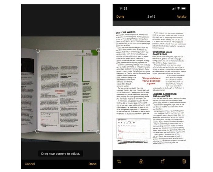 If you a seize an image of your doc, it’s possible you’ll then crop it by tapping its thumbnail down inside the bottom left-hand nook of your show. It can take you to the enhancing show and present 4 new icons on the bottom allowing you to Crop, Rework the image to a gray scale or black-and-white image or image if desired. Using these icons, you’ll be able to too rotate the image and discard it or crack it by pressing the “Retake” alternative inside the prime right-hand nook of the show as inside the image below on the left.